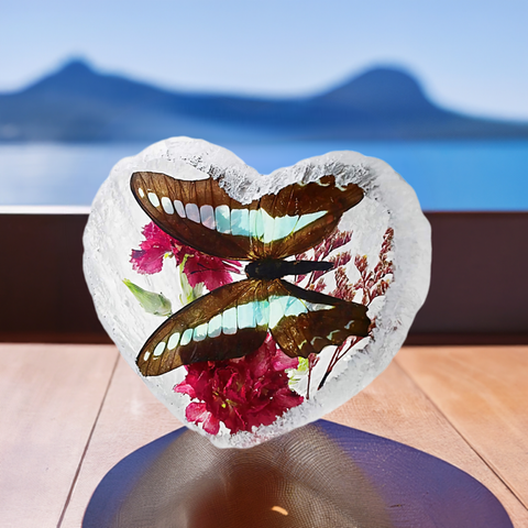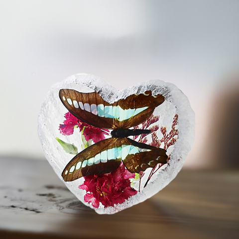 Share the beauty of nature with this charming heart-shaped resin display featuring a real butterfly preserved forever. Perfect as a desktop decoration, paperweight, or thoughtful gift, this piece is a symbol of love, transformation, and natural beauty.