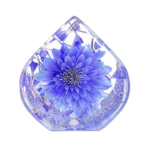 Add a touch of elegance to your desk or shelf with this beautiful teardrop-shaped paperweight featuring a real purple flower preserved in clear resin. Both practical and decorative, this piece captures the timeless beauty of nature in a way that lasts forever.